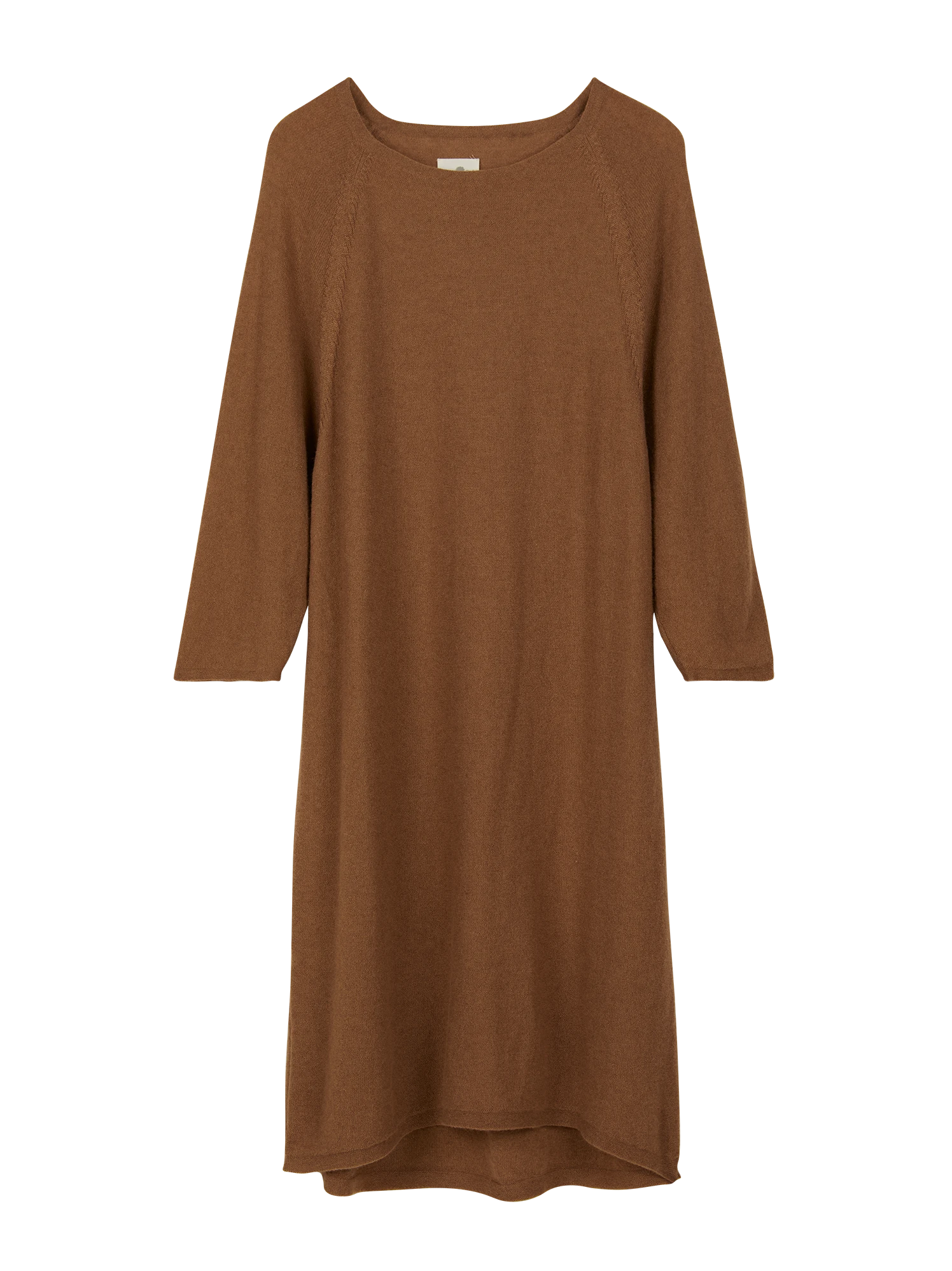 Ein Must-Have für jede nachhaltige Garderobe: sehr fein abgestricktes Kleid aus hochwertigem Kamelhaar – anschmiegsam und angenehm auf der Haut. Die Passform ist locker, mit Raglanärmeln in 3/4-Länge und 1×1-Rippbündchen an Hals-, Ärmel- und Saumabschluss.