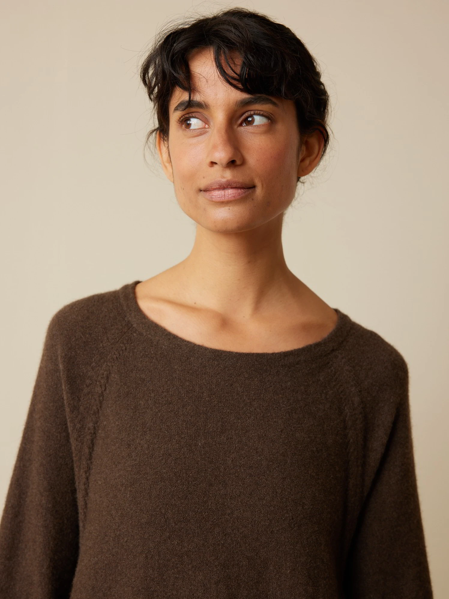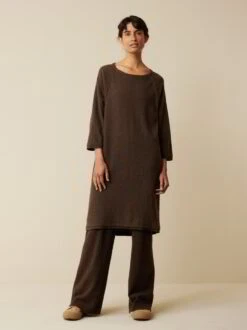 Ein Must-Have für jede nachhaltige Garderobe: weiches Strickkleid aus hochwertigem Yakhaar – anschmiegsam und angenehm auf der Haut. Die Passform ist weit, mit Raglanärmeln in 3/4-Länge und rundem Tubular- Halsausschnitt.