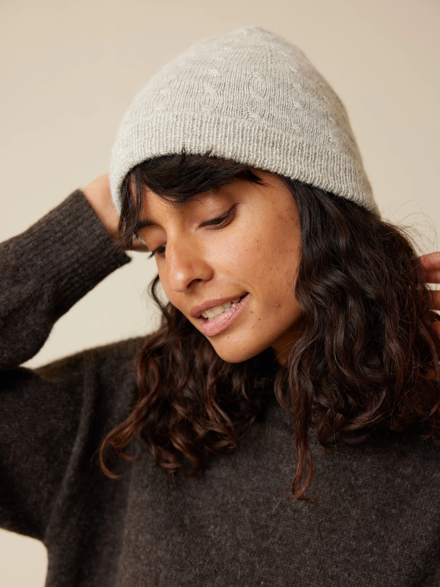 Ein Must-Have für kühlere Tage: zeitlose Mütze mit einer besonders-feinen Strick-Dessinierung. Alpakawolle verspricht ein sanftes, zart-weiches Gefühl auf der Haut und wärmt ausgezeichnet. Mit 1×1-Rippbündchen am Umschlagbund.