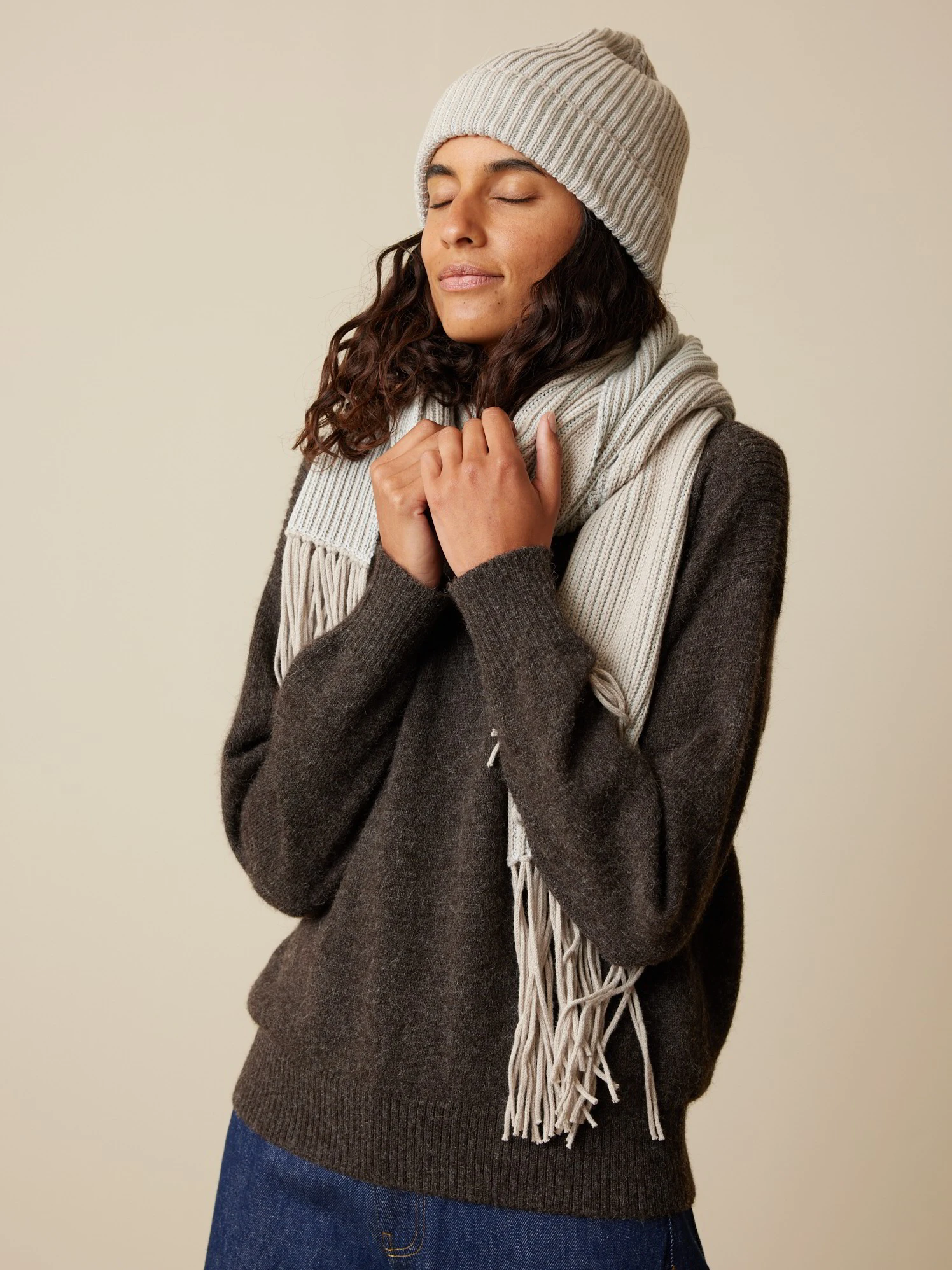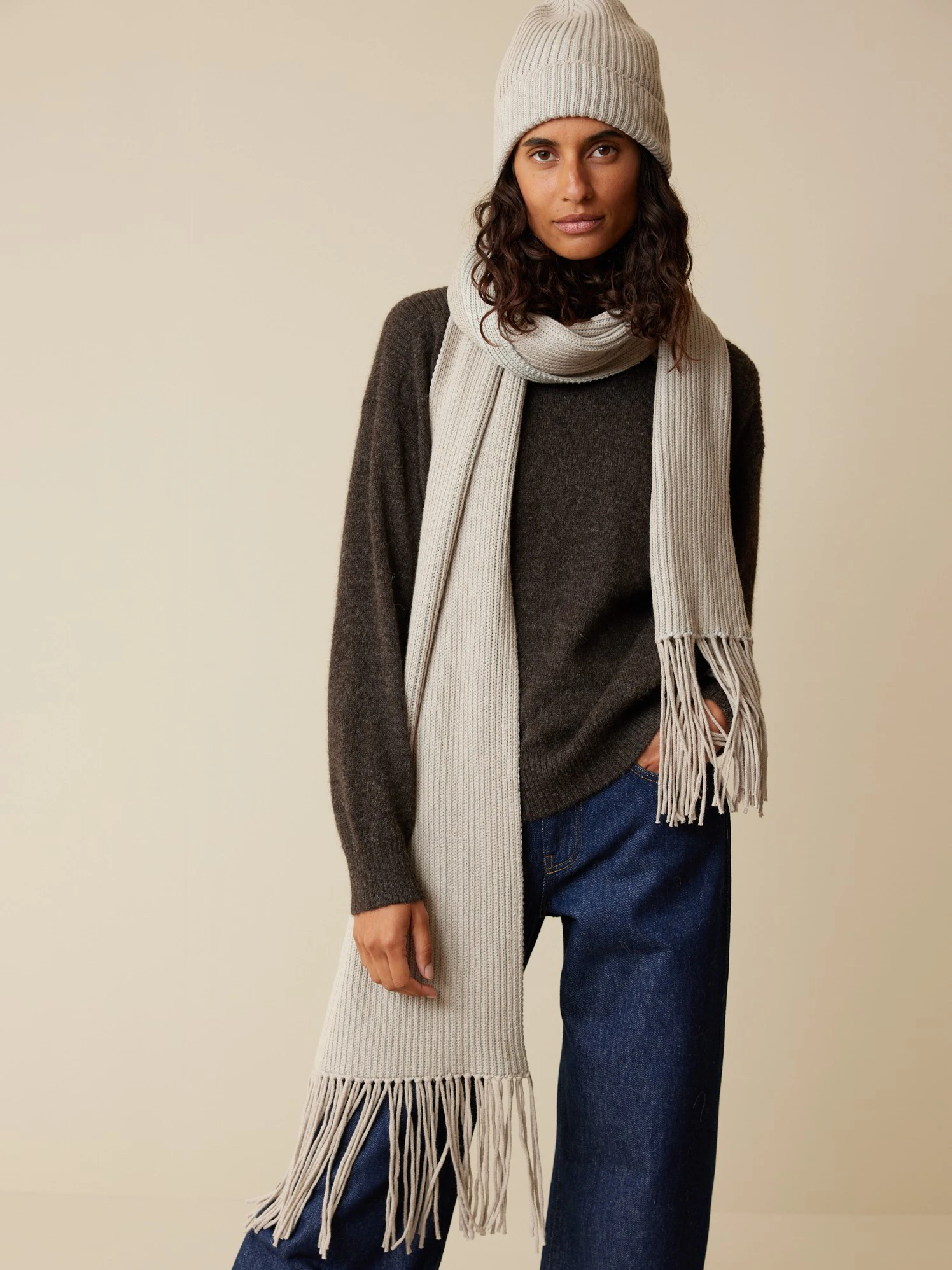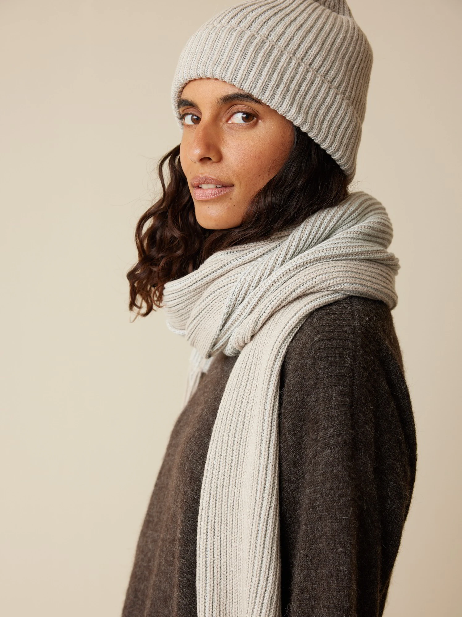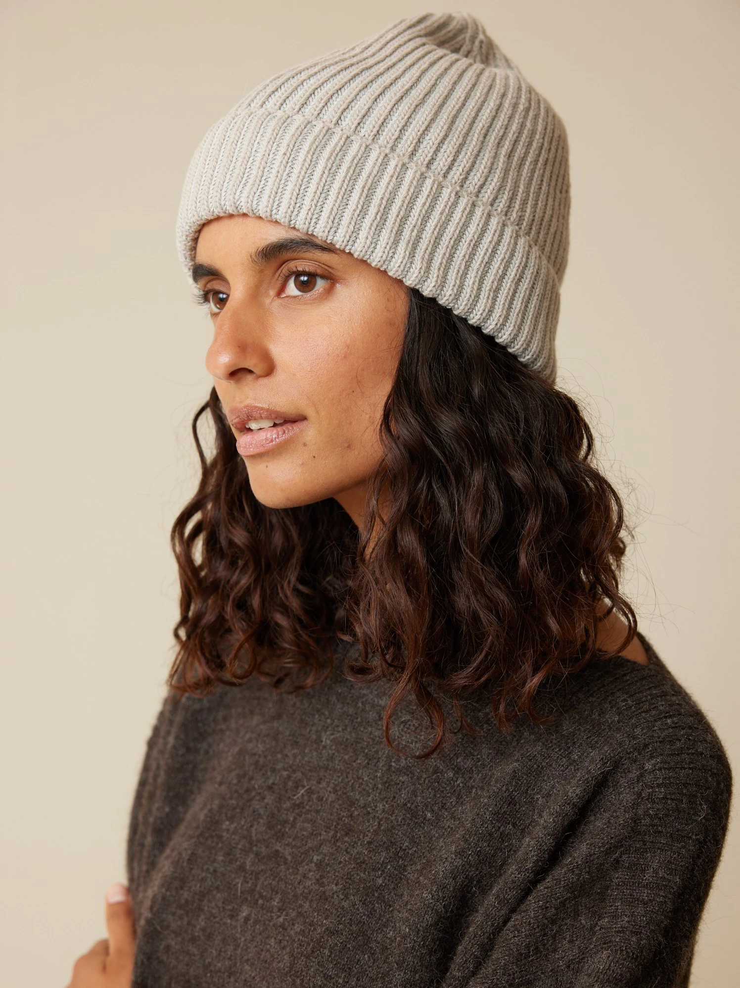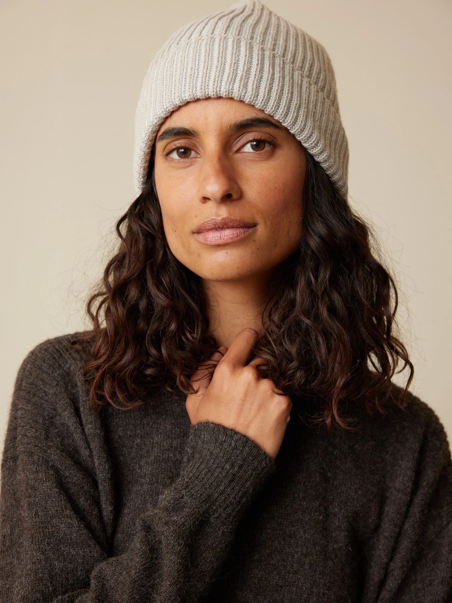 Für jedes Outfit die ideale Abrundung: Mütze aus weicher Baumwolle und hochwertiger Alpakawolle. Die in Patent-gestrickte Kombination verspricht ein sanftes Gefühl auf der Haut und wärmt ausgezeichnet. Die breite Ripp-Struktur in Kombination mit einem zurückhaltenden Farbton aus einem zweifarbig gezwirnten Garn ergibt eine zeitlose Optik, die auch in vielen Jahren noch zu jedem Outfit kombinierbar ist.