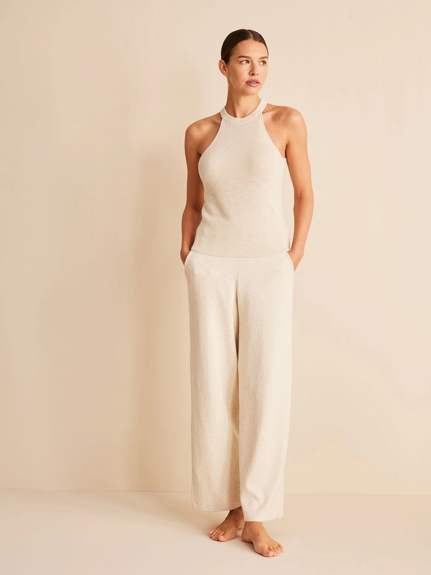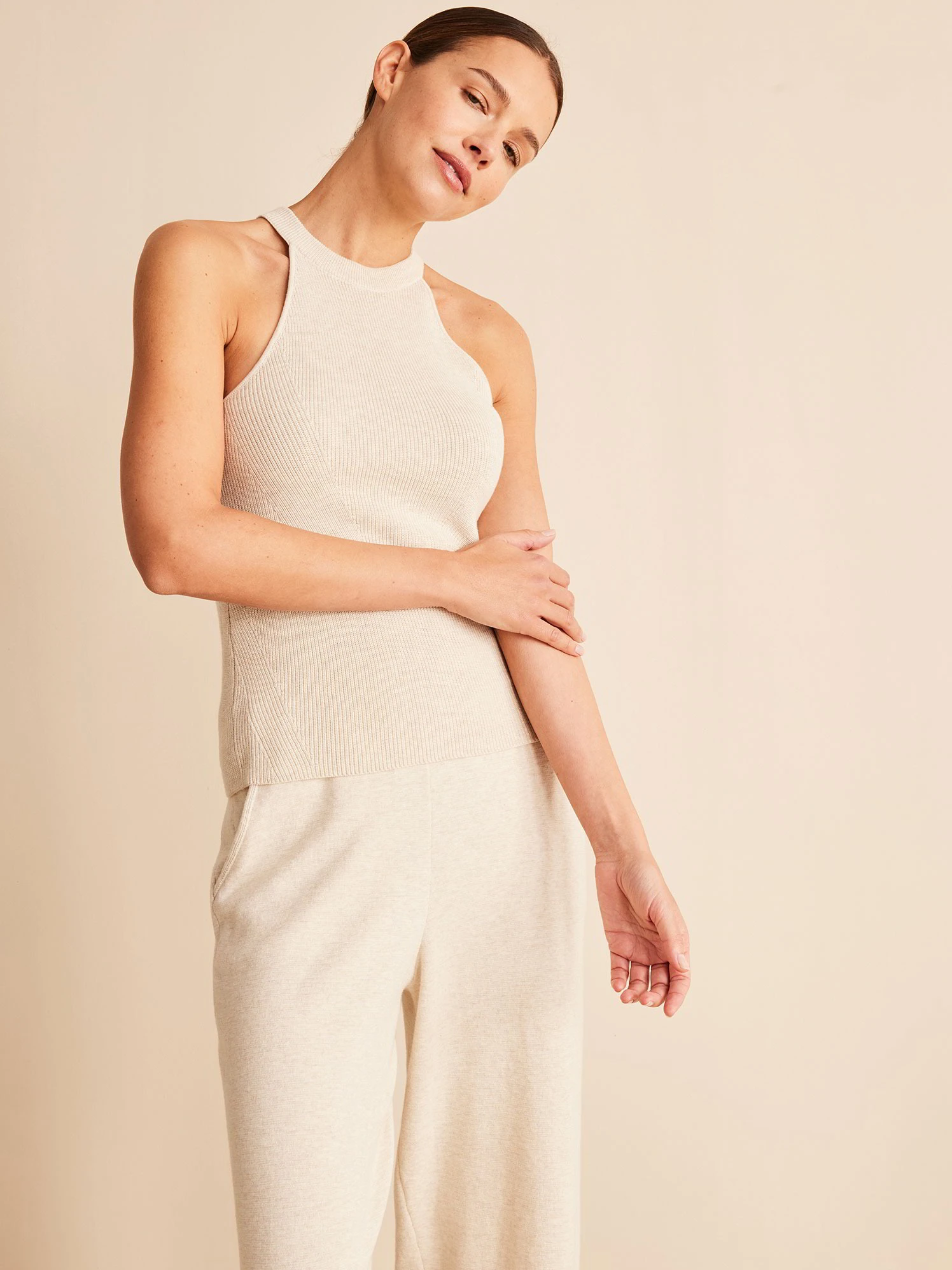 Das hochwertige Stricktop wird aus wertvoller, hautfreundlicher Baumwolle kbA mit viel Liebe zum Detail gefertigt. Der figurbetonte Schnitt entsteht durch die besondere Linienführung, wodurch eine schöne Silhouette entsteht. Das schulterfreie Modell wird mit Rippbündchen am Halsausschnitt abgerundet und lässt sich vielseitig kombinieren: zu einer figurumspielenden Jeans, einer weiten Marlenehose oder einer gemütlichen Sweatpants. Das ärmellose Top ist ein wahrer Allrounder.