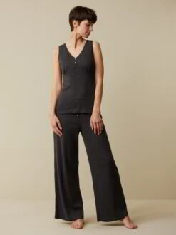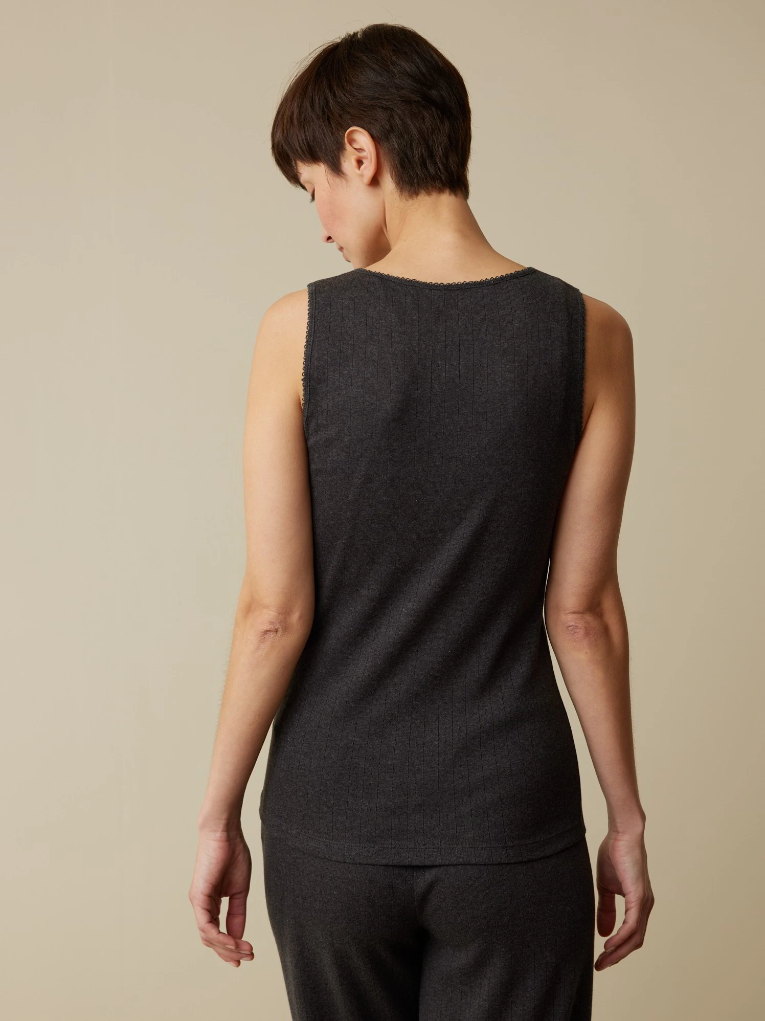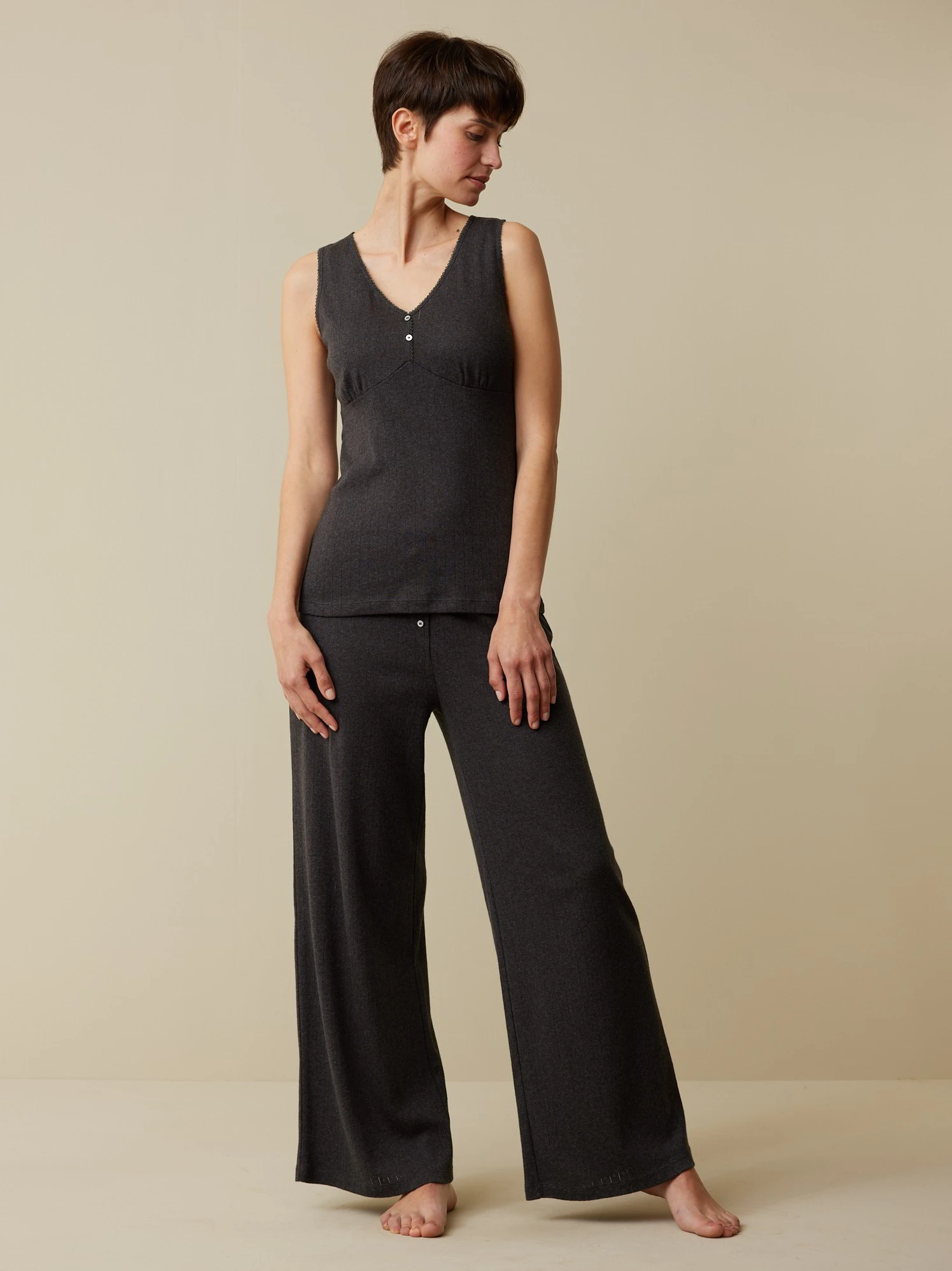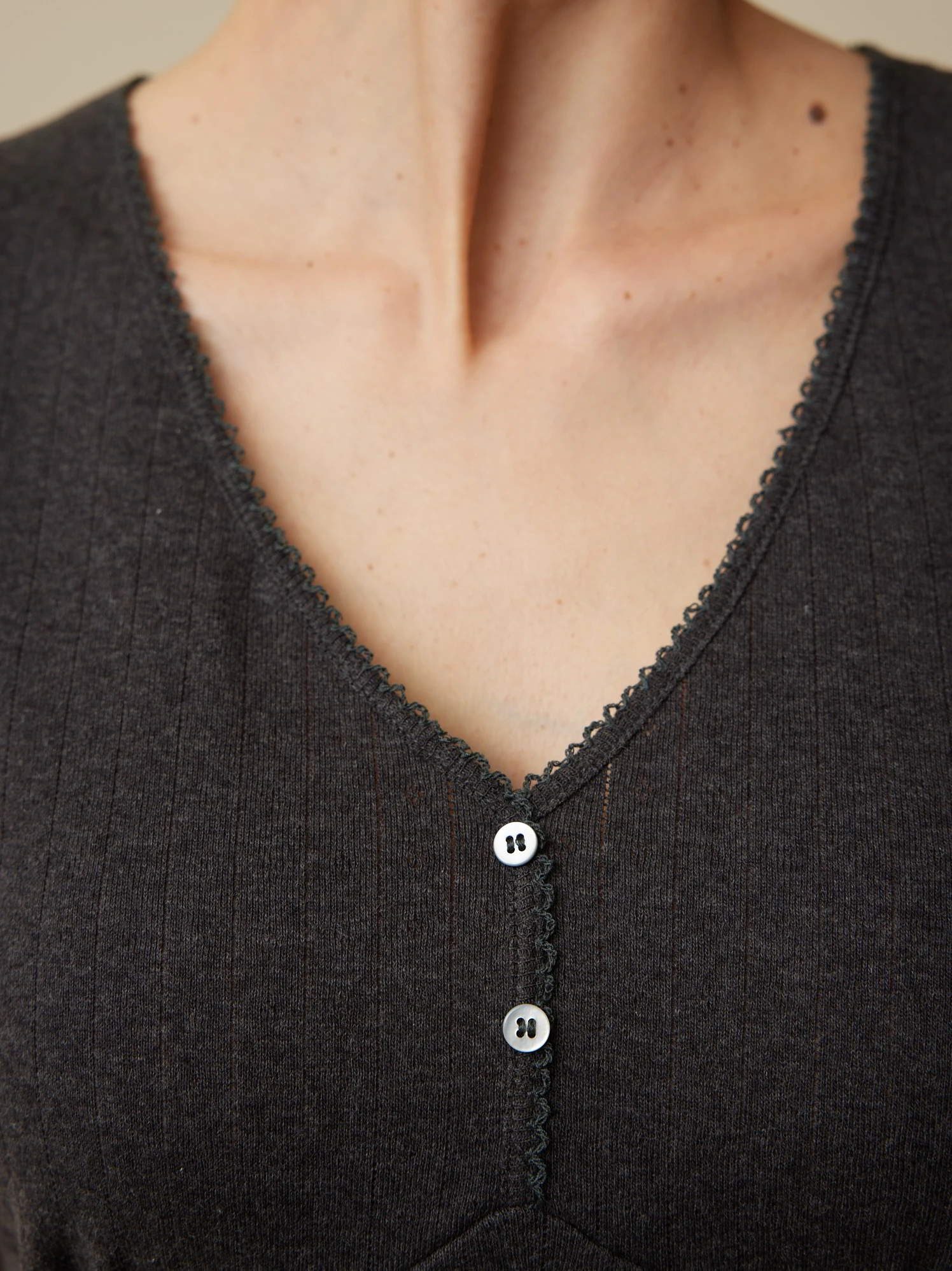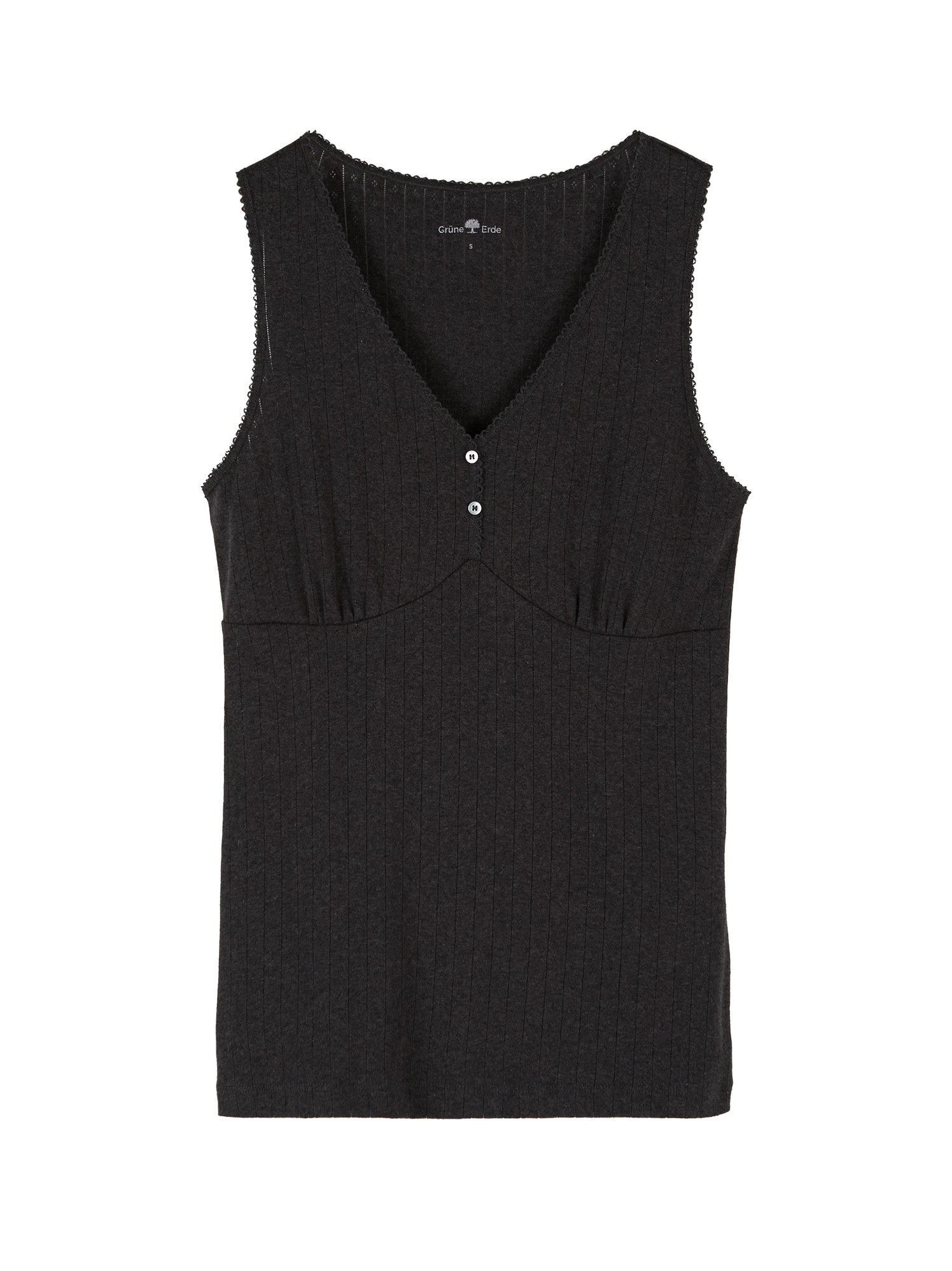 Garantiert ein Lieblingsstück: Schlaftop aus hochwertiger, weicher Baumwolle. Das Modell mit der feinen Ajour-Dessinierung überzeugt mit seiner zarten Optik, dem weichen Griff und der hochwertigen Fertigung – garantiert ökologisch & sozial fair! Abgerundet mit V-Ausschnitt mit kurzer Zier-Knopfleiste und zarten Crochetta-Nähten, Brustabnäher sowie Teilungsnaht auf der Vorderseite.