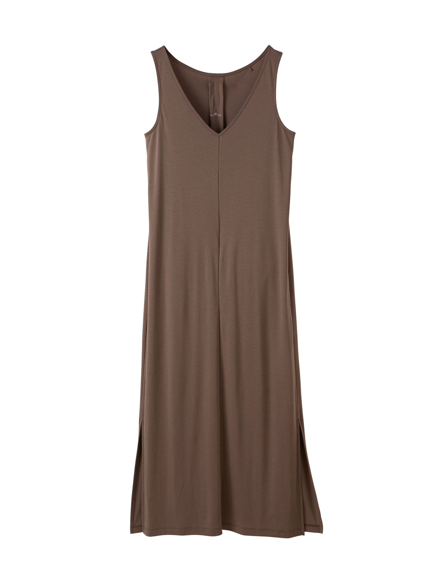Weiches Baumwoll-Gewebe bildet die Grundlage für dieses besondere Trägerkleid und sorgt für einen schönen Fall. Ein besonderes Highlight des Kleidungsstückes in leichter A-Linie ist die zurückhaltende Schnittführung, welche für eine zeitlose Silhouette sorgt. Das lange Kleid mit dem V-Ausschnitt hat eine Mittelnaht auf der Vorderseite, eine eingelegte Falte auf der Rückseite sowie zwei lange Seitenschlitze am Saum.
