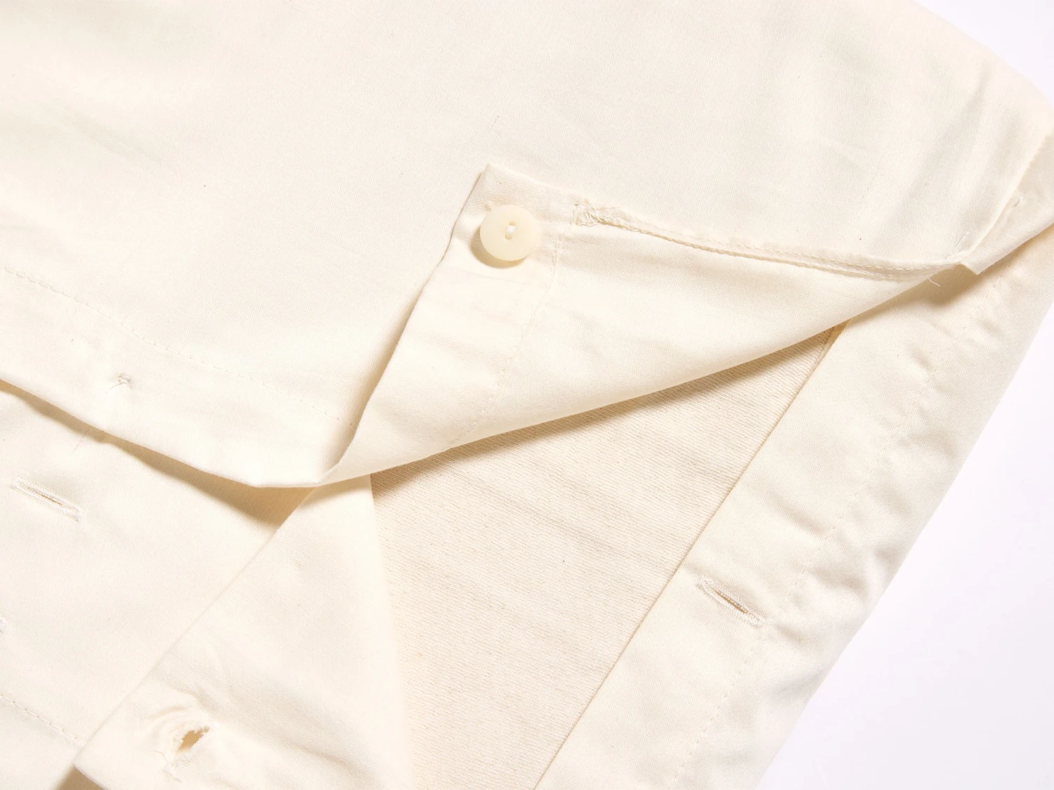 Hochwertiger Baumwoll-Satin, naturfarben uni, sorgfältig verarbeitet, angenehm auf der Haut, luftig und feuchtigkeitsregulierend. Waschbar, pflegeleicht.