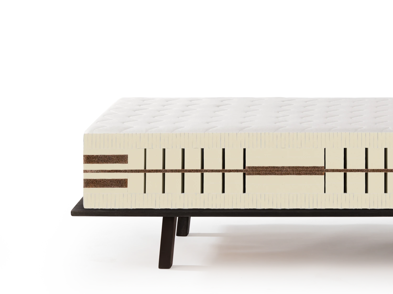 Die 25 cm Wolke von Eden Premium hat einen bis ins letzte Detail durchdachten Aufbau: Punktelastische Naturlatexkerne werden mit flächenelastischen Kokoslatexkernen kombiniert. Das sorgt bei aller „Weichheit“ für eine angenehme Stütze im Lendenwirbelbereich, sowie für die bei Matratzen mit dieser Höhe erforderliche Stabilität.