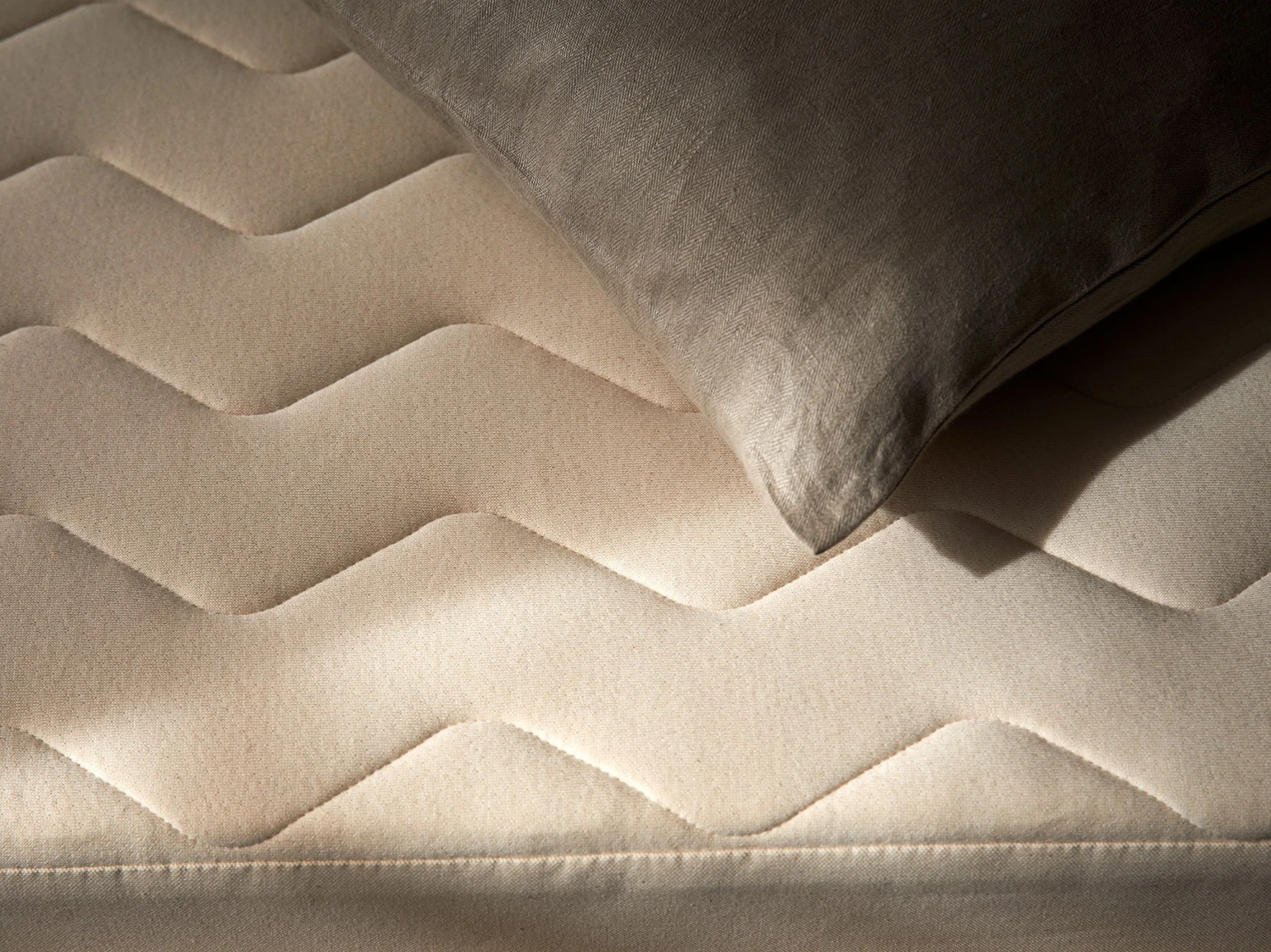 Der Bezug ist auf der „Winterseite“ der Wolke von Eden Premium mit warmem Hanf-Vlies, auf der „Sommerseite“ mit kühlerem Nesselfaser-Vlies versteppt – zum Wenden der Matratze je nach Jahreszeit bzw. persönlichem Wärmebedürfnis.