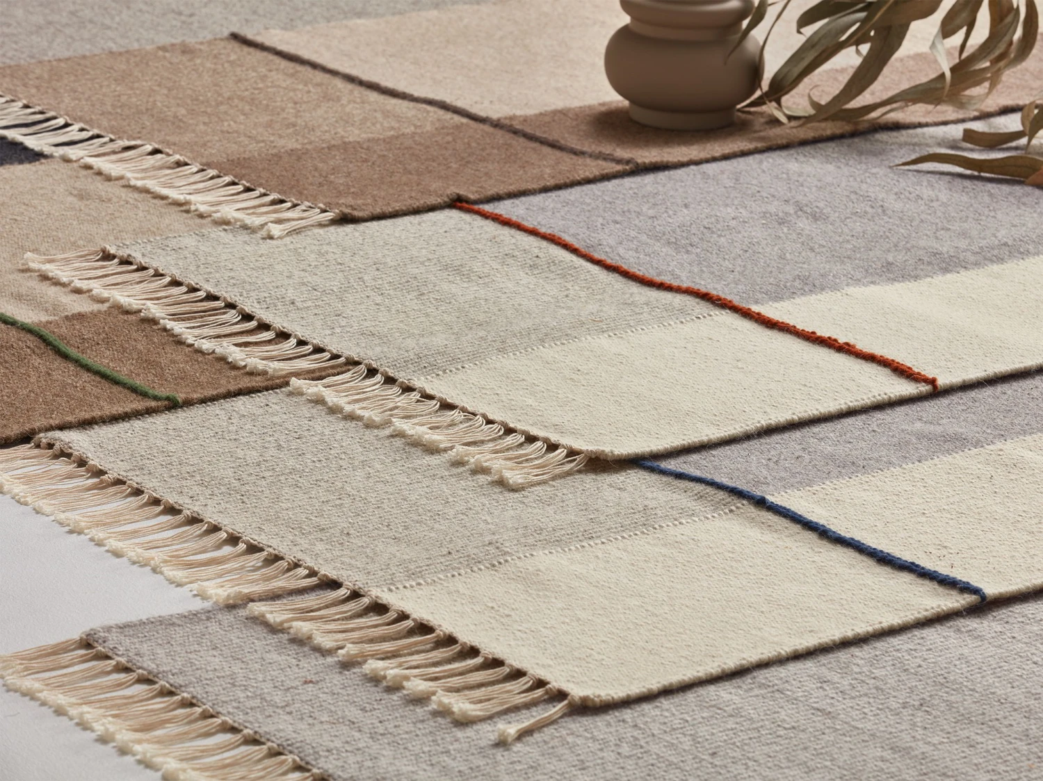 Markenzeichen des Kelims ist der Sumak: ein schmaler, leicht erhöhter Streifen aus Schussfäden in Kontrastfarben. Wir sind keine Freunde inflationär verwendeter Superlative, aber: Im Hinblick auf Design, biologisch zertifizierte Naturfasern, Ökologie, Handwerkstechnik und Fertigung in Mitteleuropa ist der Kelim Mata tatsächlich einzigartig.