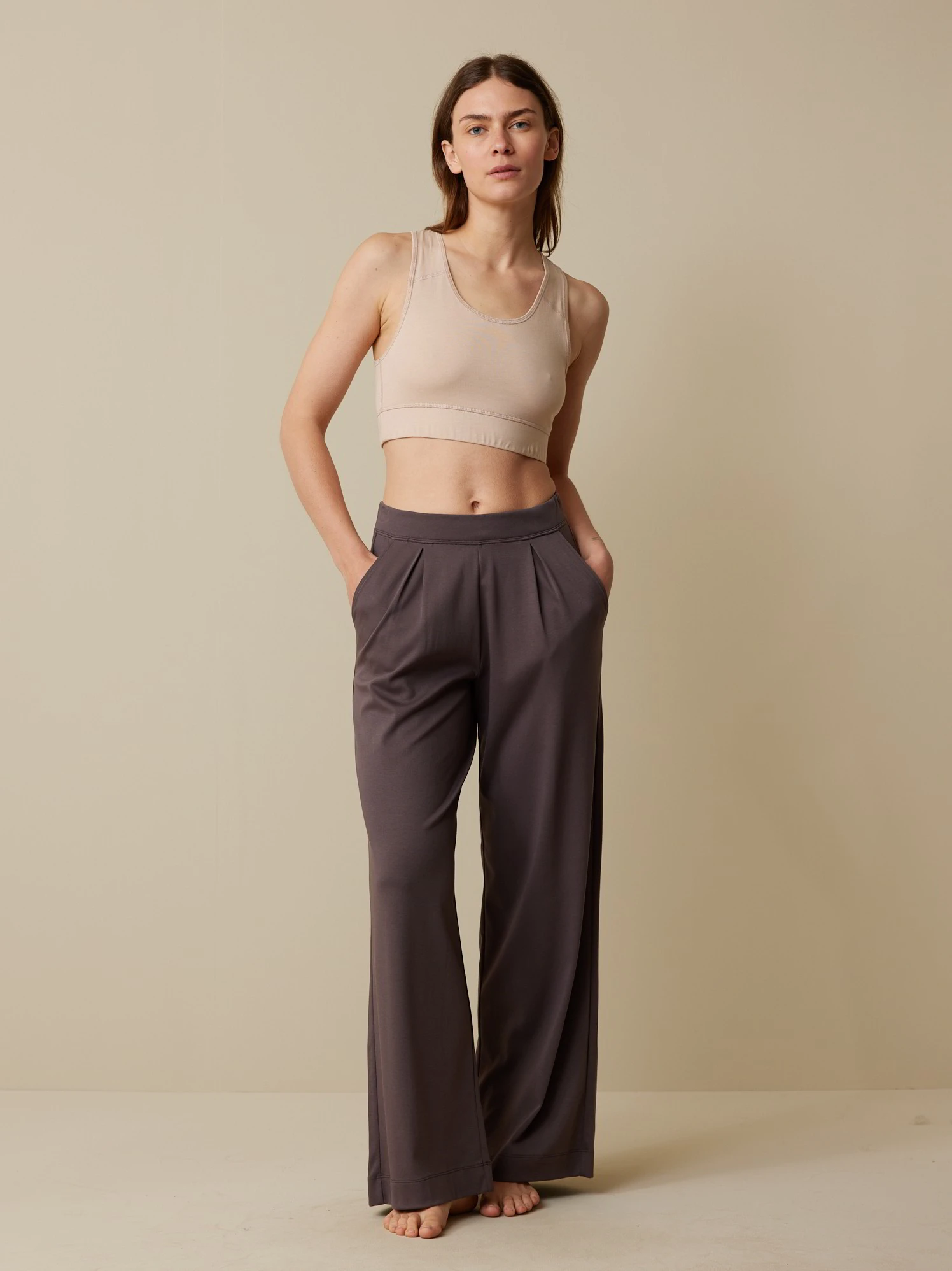 Ein weich-elastischer Stoff, extraweite Beine und hoher Komfort: Unsere Palazzo-Hose begeistert mit ihrer Bequemlichkeit. Das Modell aus weicher Baumwolle hat einen praktischen Gummibund und einen breiten Sattel auf der Hinterhose – für eine schöne Silhouette. Eine eingelegte Falte auf der Vorderhose rundet das knöchellange Kleidungsstück harmonisch ab.